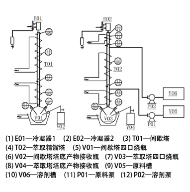萃取精餾塔、間歇精餾塔、冷凝器-回流頭、塔底產(chǎn)物接收瓶、塔頂產(chǎn)物接收瓶、電磁鐵-時(shí)間繼電器、加熱釜、進(jìn)料系統、加熱控制系統、壓力計、溫度傳感器、智能儀表、嵌入式一體化彩色觸控顯示屏。